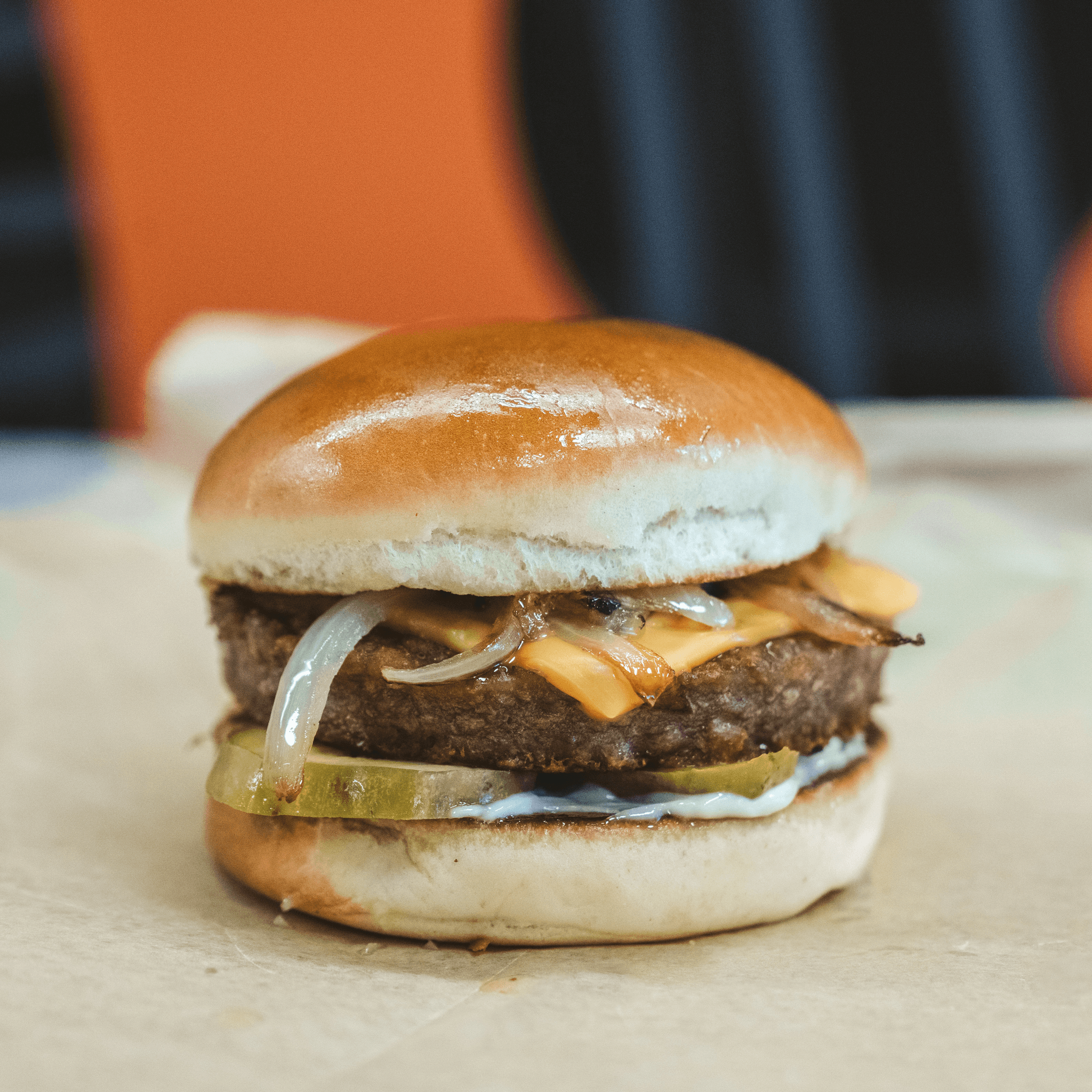 Juicy beef patty topped with melted cheese, nestled in a soft bun.