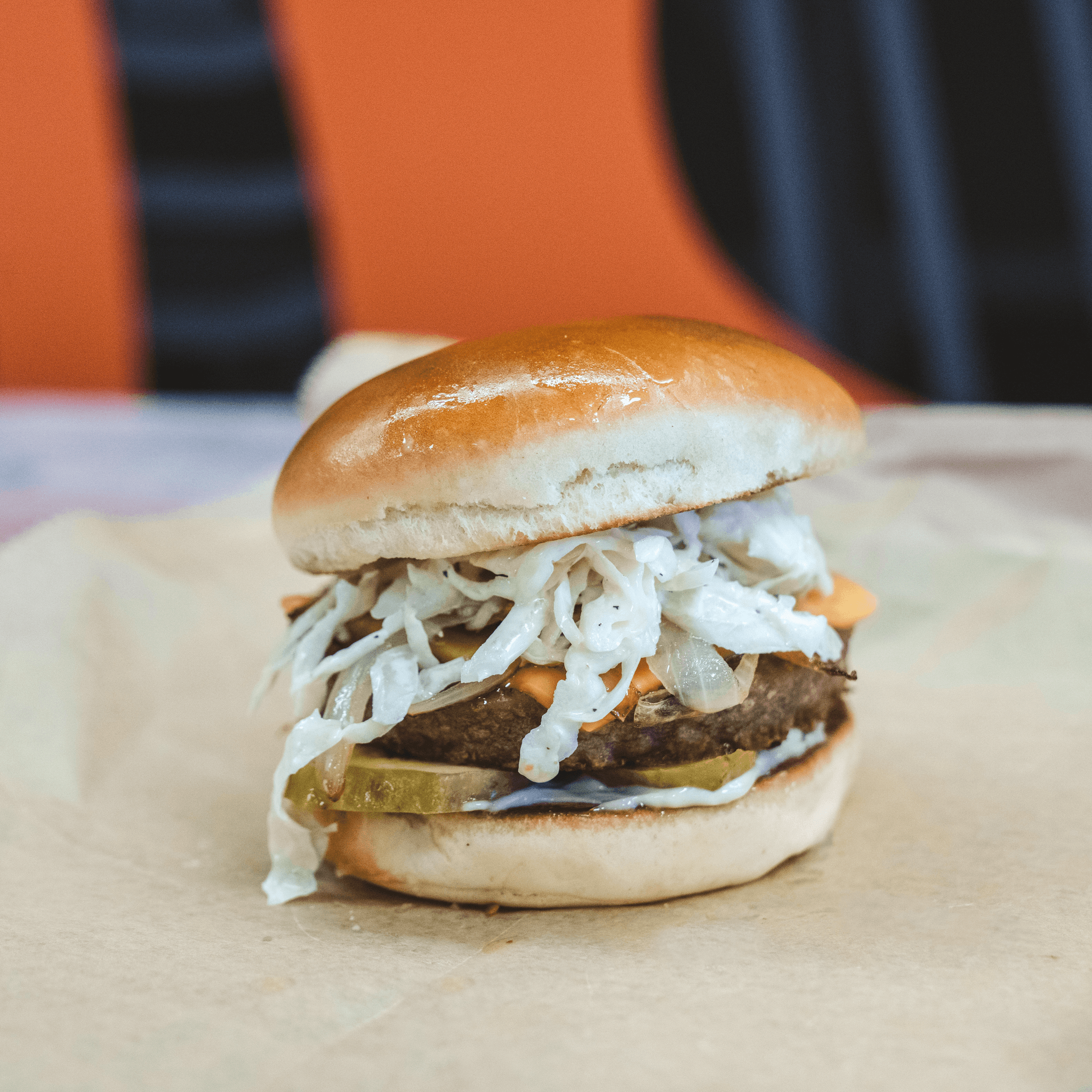 Our Julius plant-based burger topped with your choice of creamy slaw or spicy slaw.
