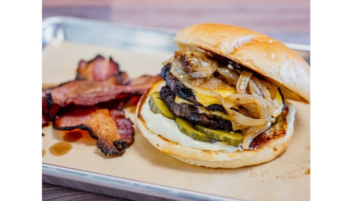 1/4lb. patty 70/30 blend of ground chuck grilled then served on a toasted brioche bun with mayo, house-made pickles and sauteed onions