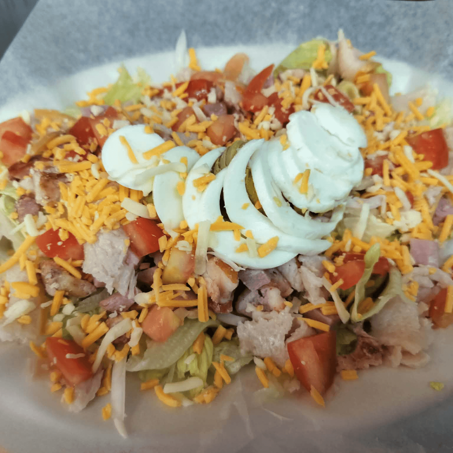 A fresh mix of crisp greens topped with savory meats, cheese, and classic fixings,—light, hearty, and perfectly balanced.