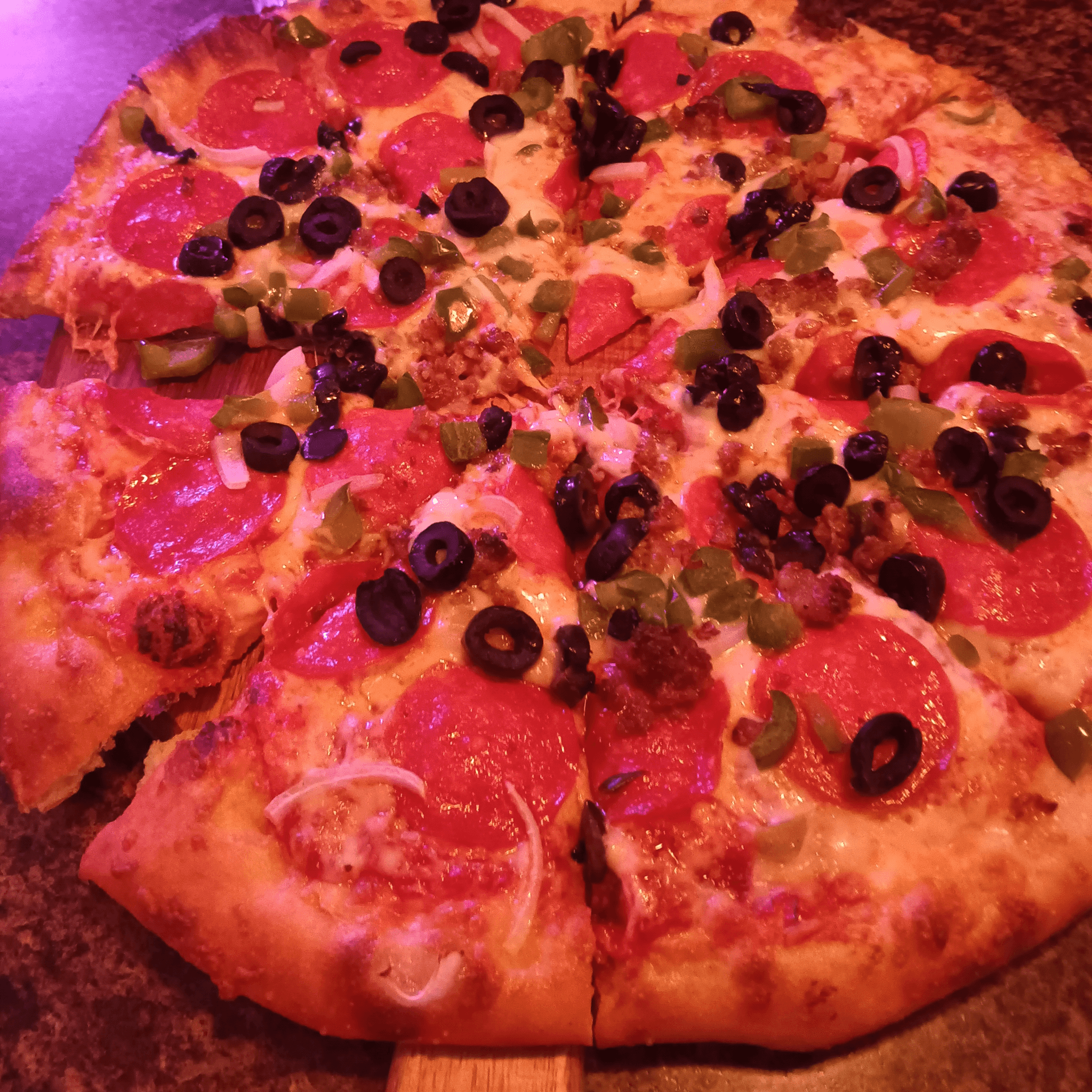 (Large) Pepperoni, Sausage, Onion, Green Pepper, Black Olives, Cheese Blend